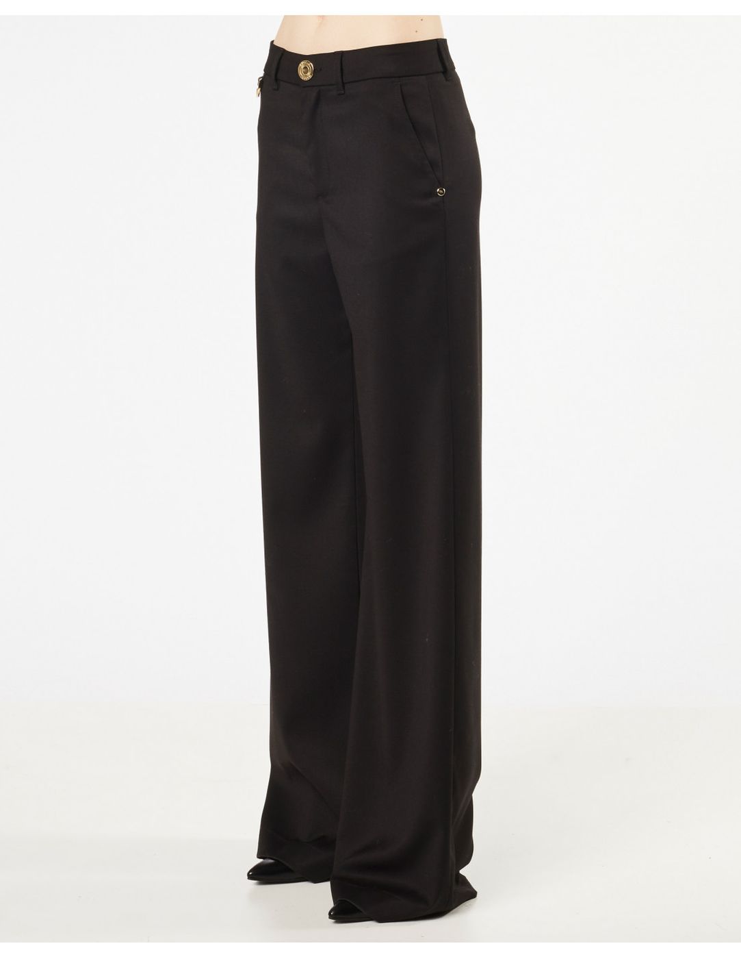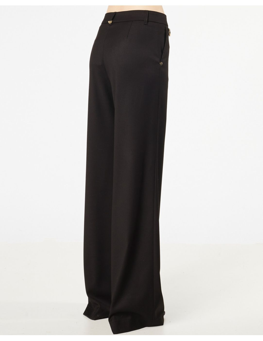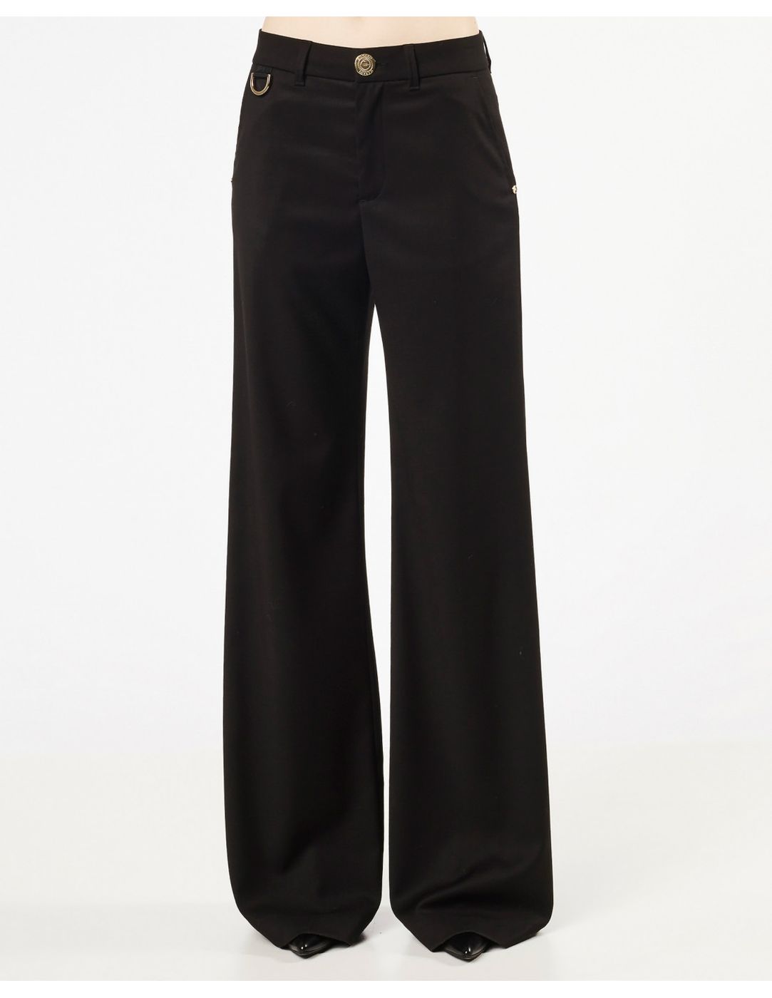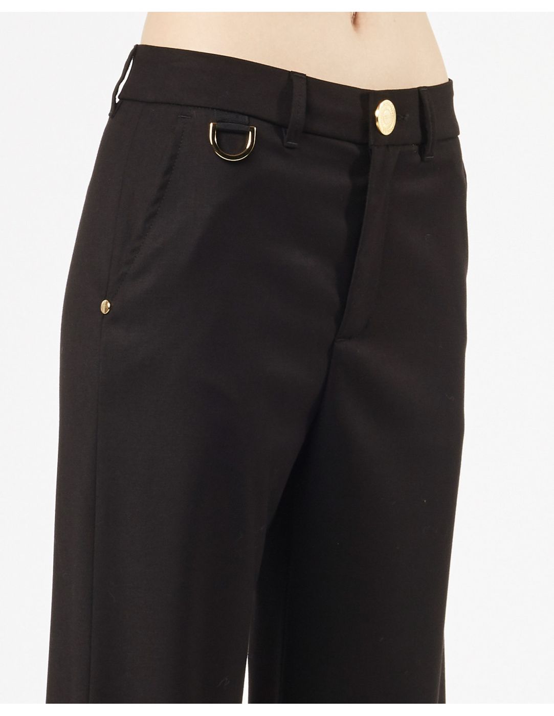 Pantalone largo in flanella con metallerie dorate