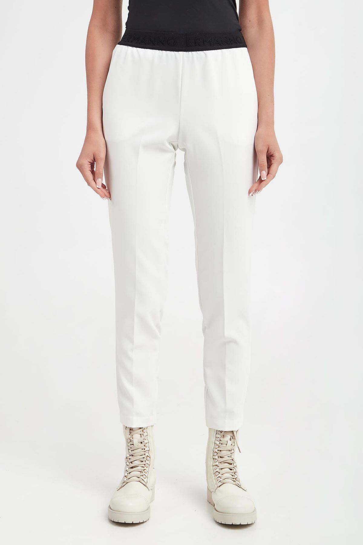 Pantalone slim vita elastica con logo