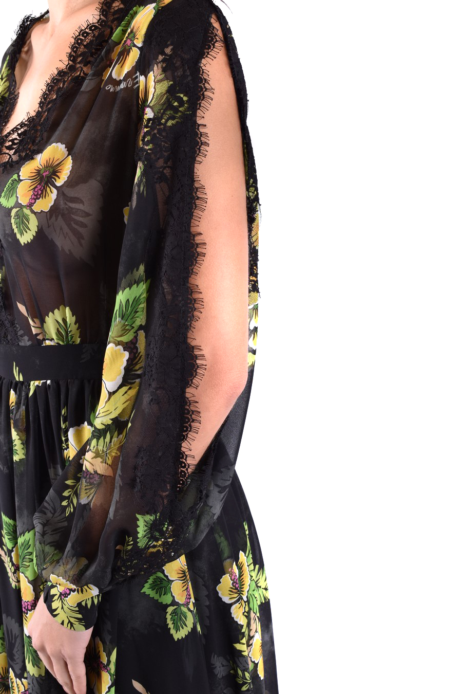 Abito stampa fiori con inserti in pizzo