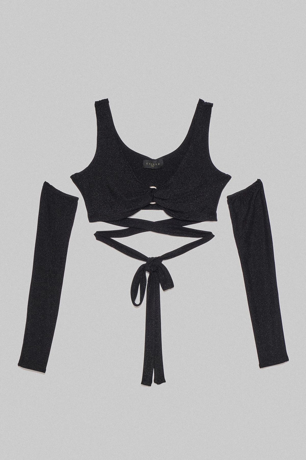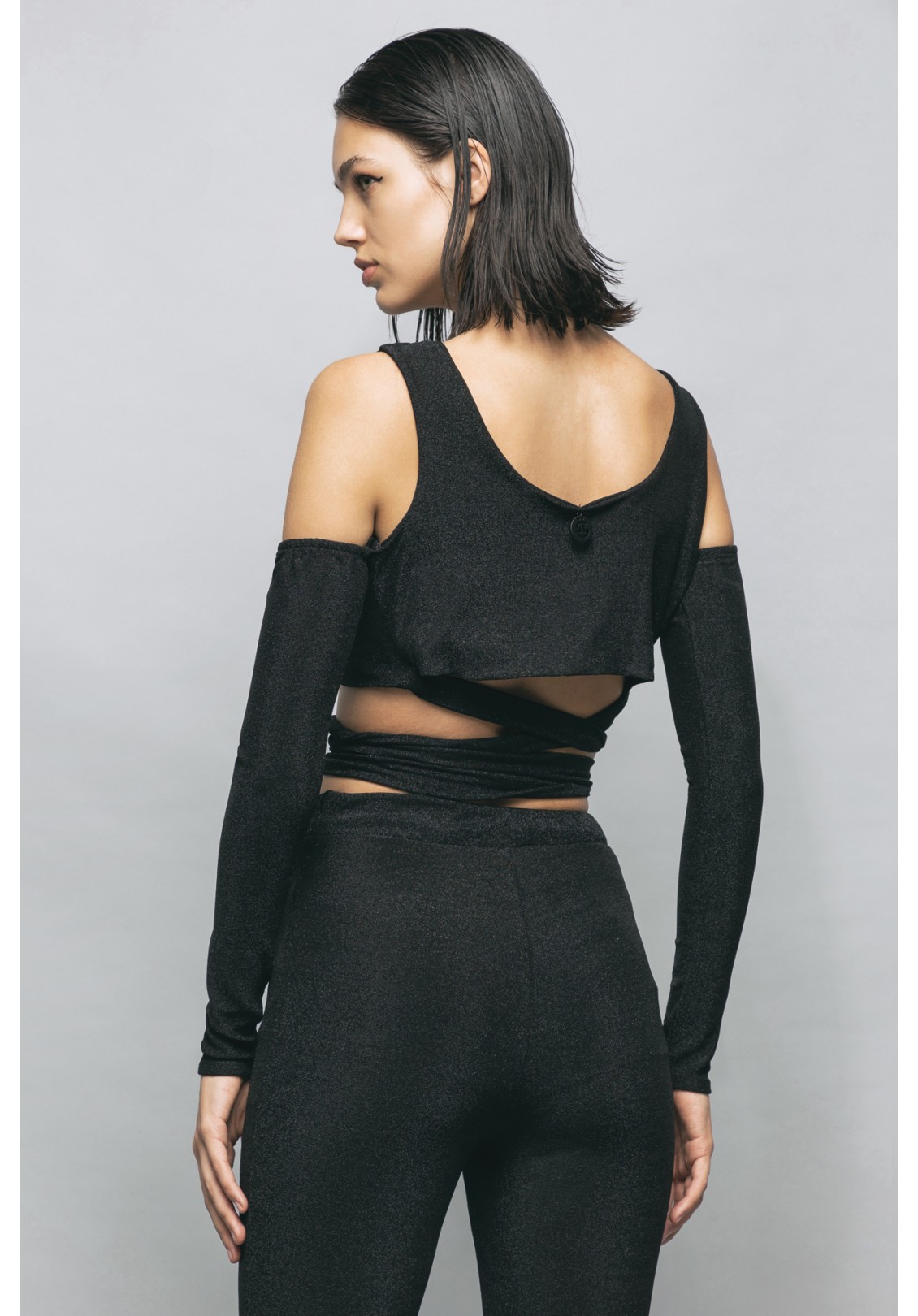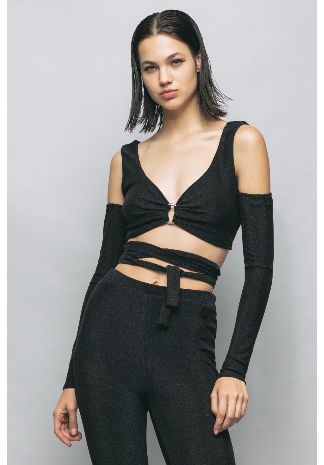 TOP IN JERSEY LUREX MANICOTTI E PENDAGLIO LOGATO