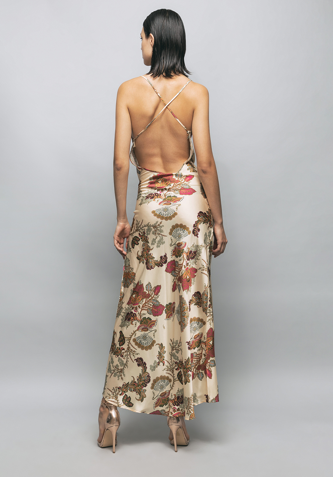 ABITO LINGERIE LUNGO IN RASO CON SPACCO DAVANTI
