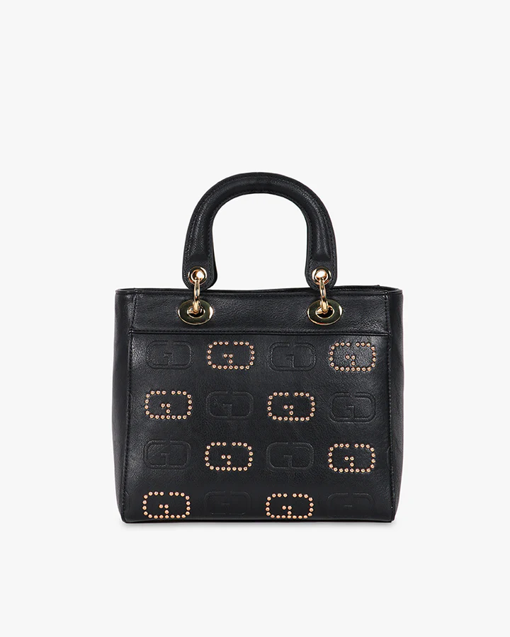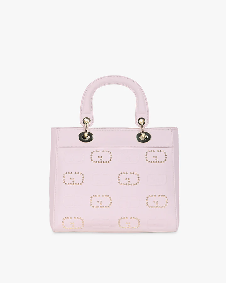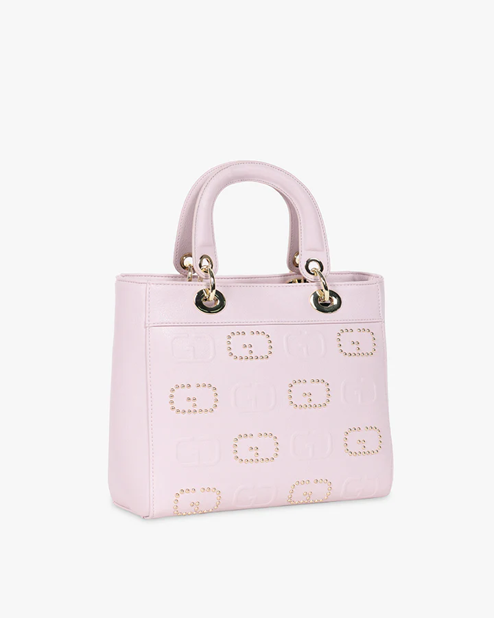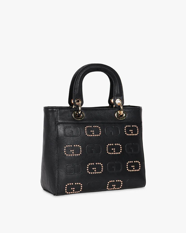 Logo monogram goffrato e con micro borchie finitura dorata
