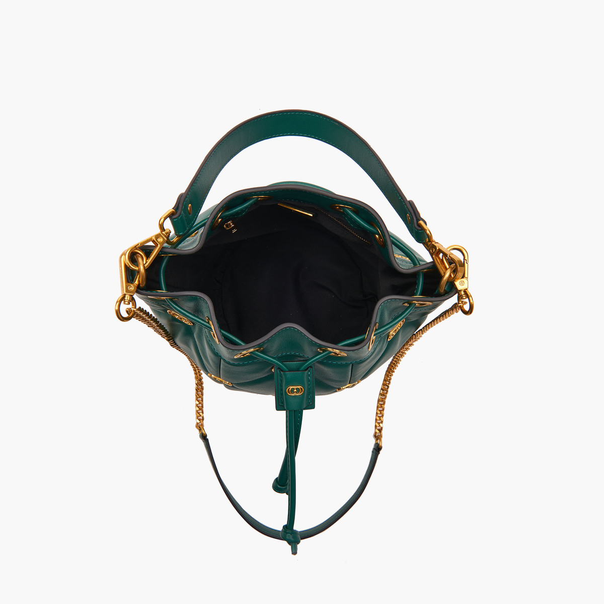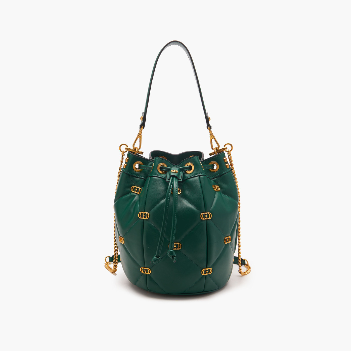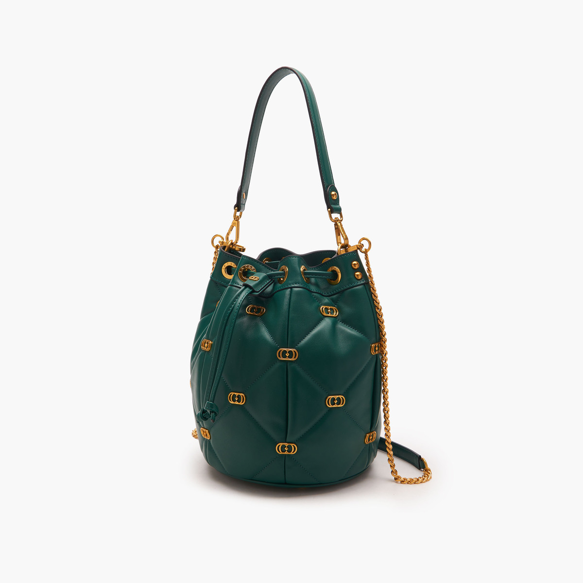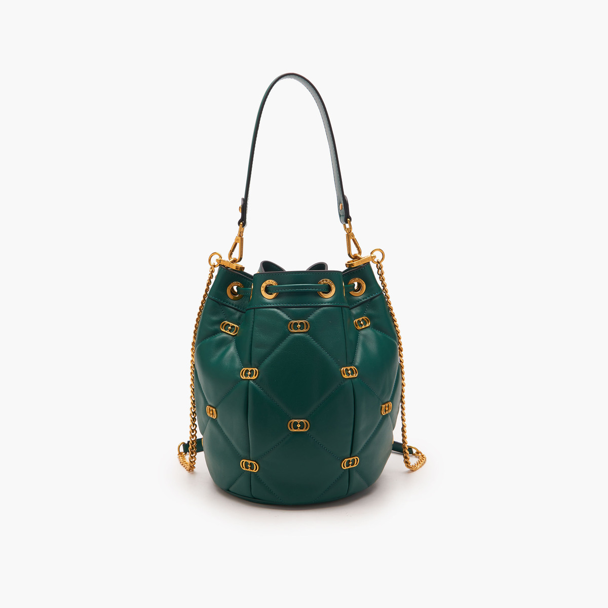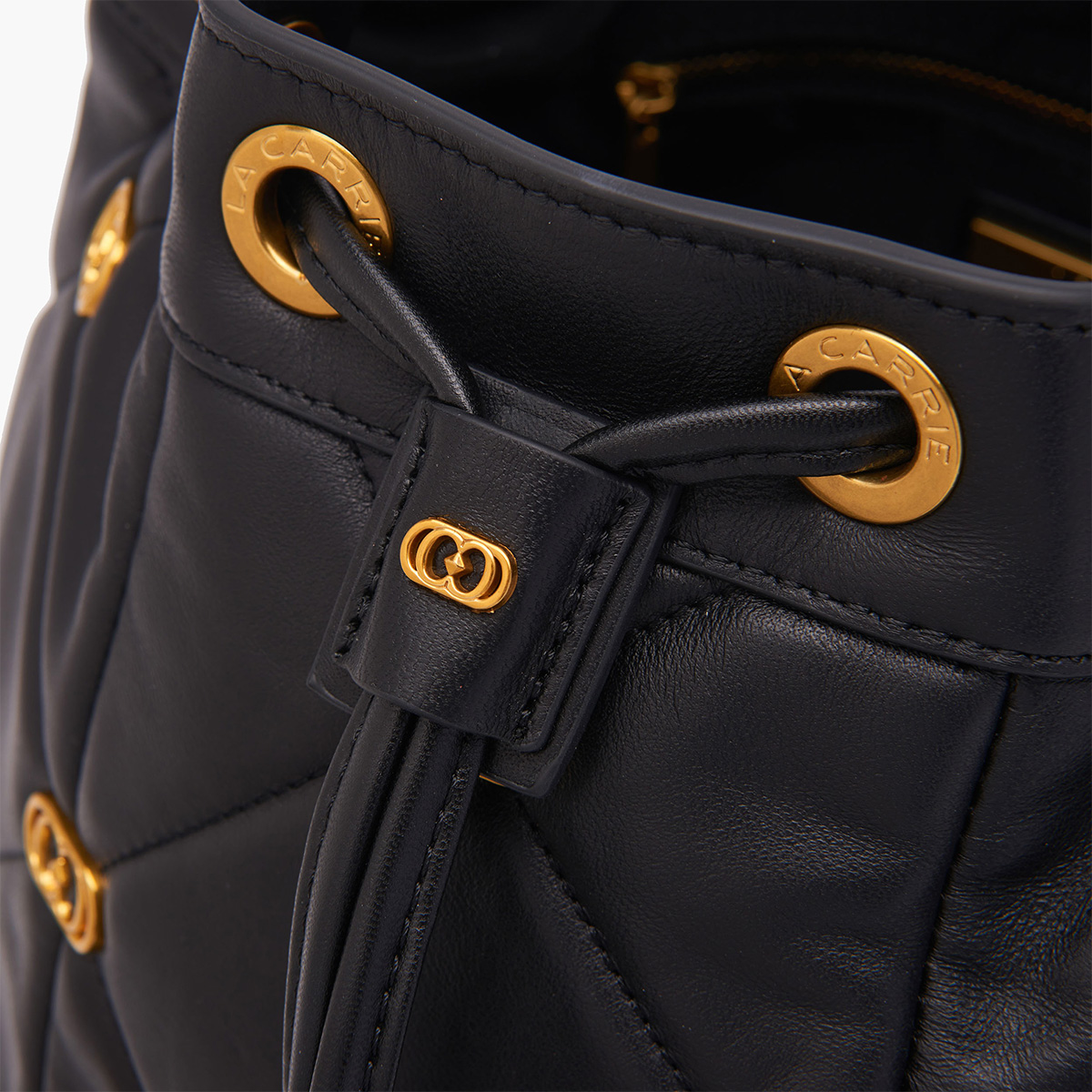 Descrizione: LOGOS GIGI BUCKET LEATHER Secchiello Logos Nero secchiello in pelle nappata con lavorazione trapuntata e piccoli loghi metallici applicati sugli incroci delle impunture, manico in pelle e tracolla di catena. DIMENSIONI 26×22×26.5