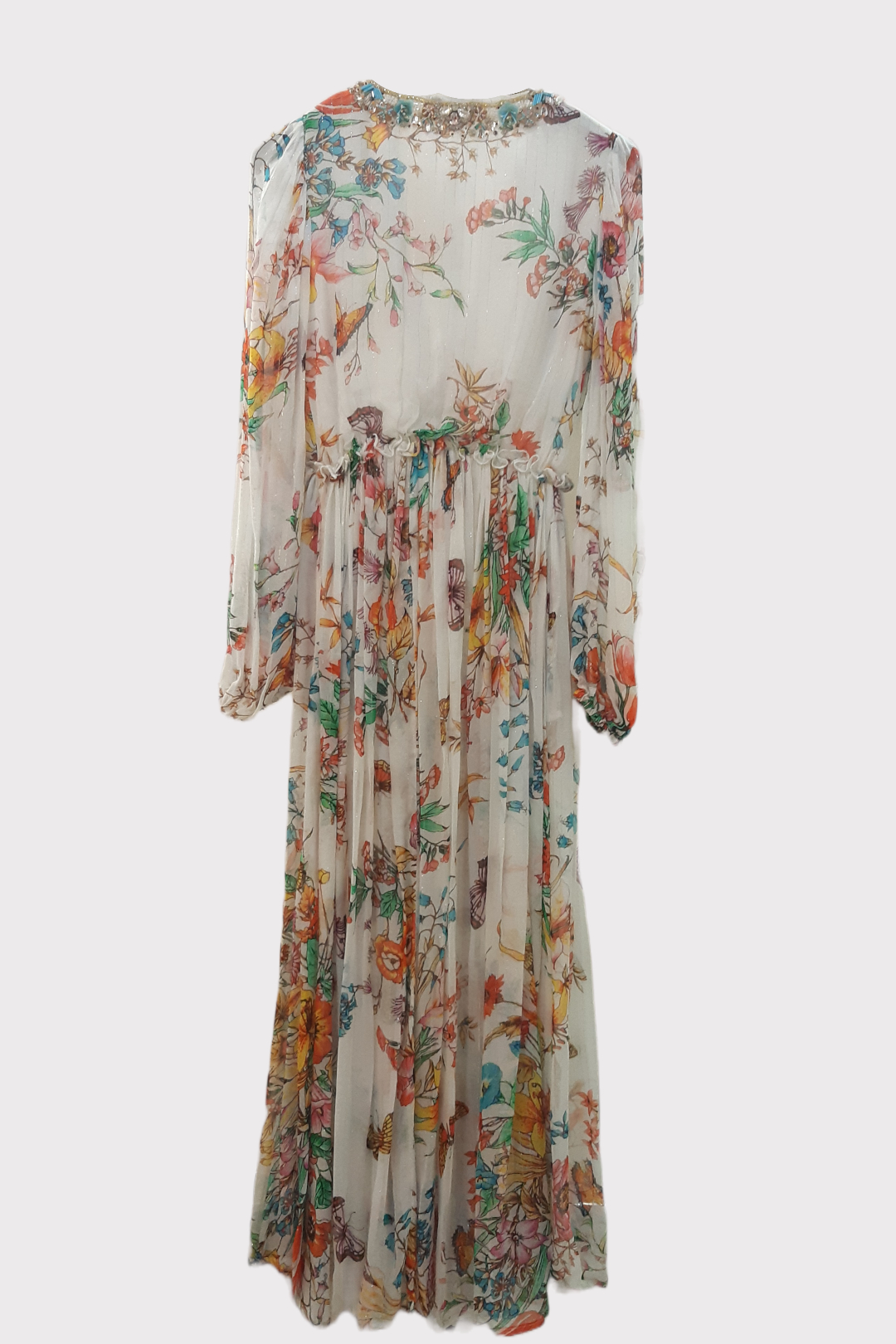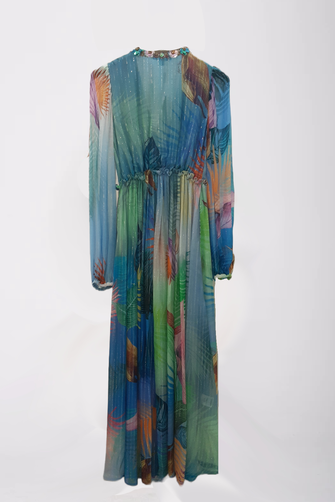 Abito lungo scollo a V e maniche lunghe