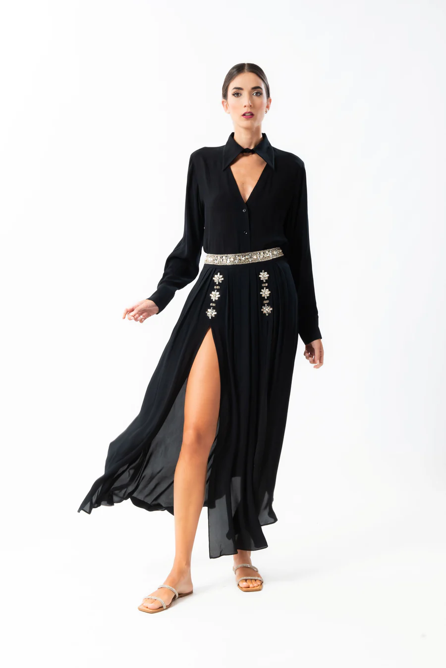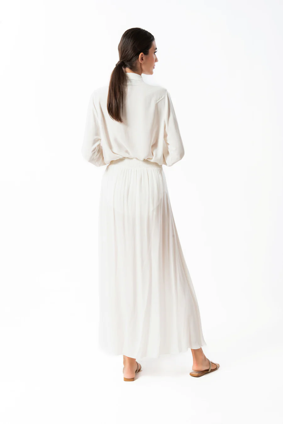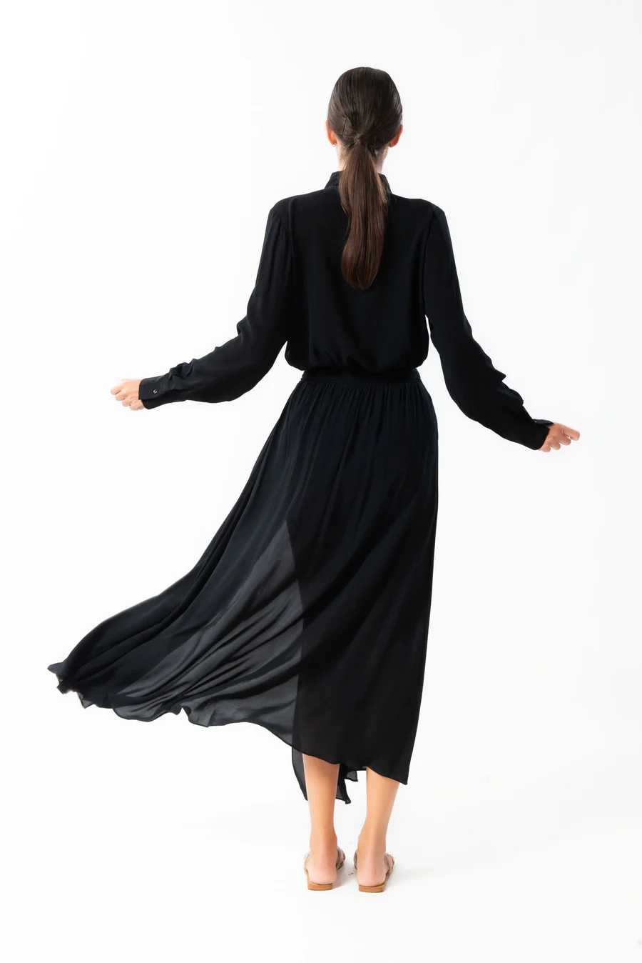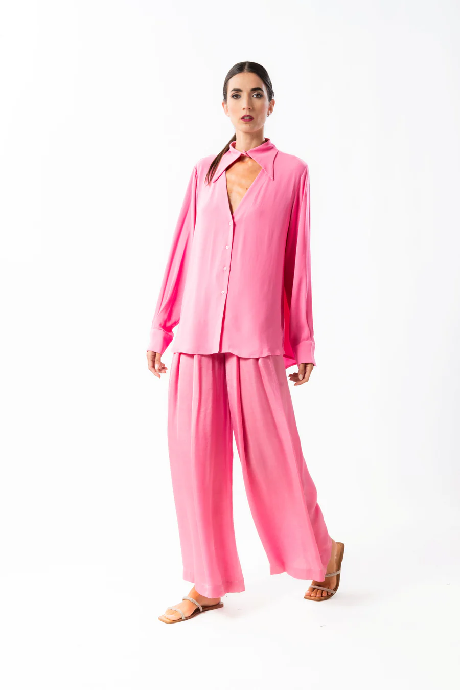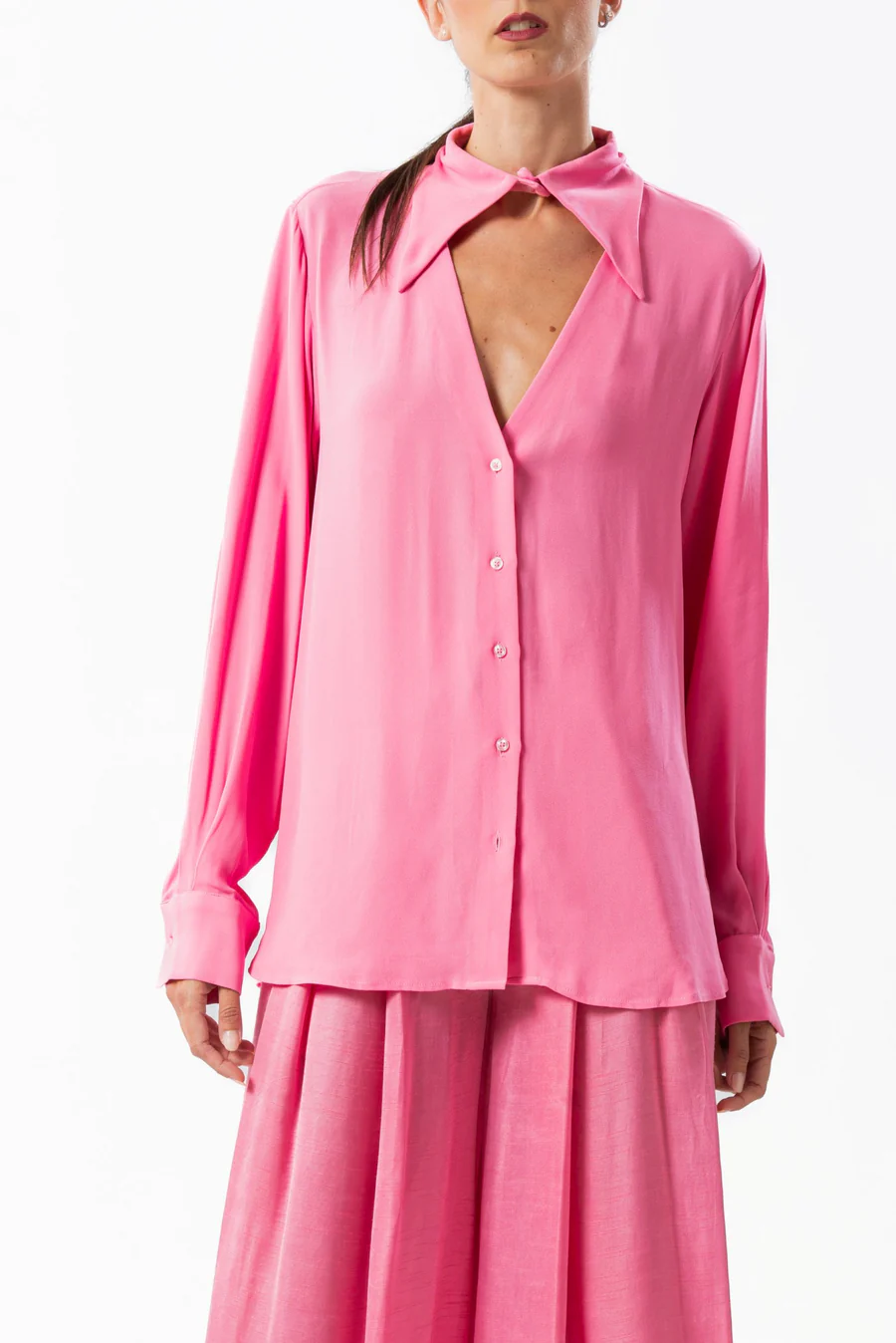Camicia scollo a V manica lunga in viscosa
