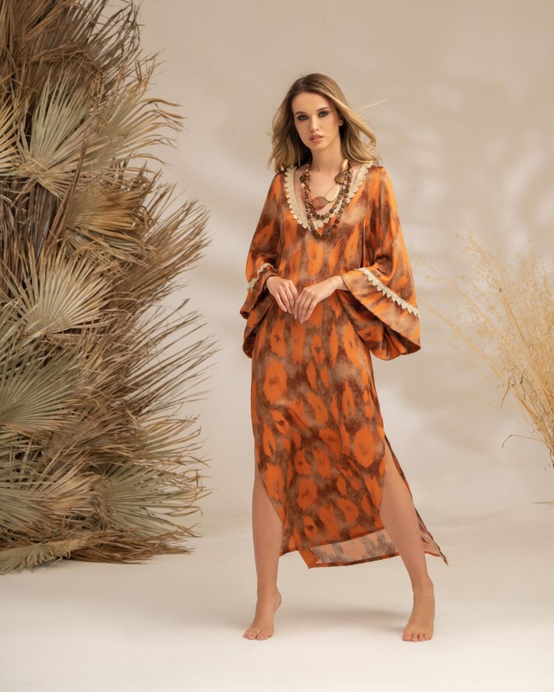 ABITO KIMONO LUNGO CON STAMPA AFRICA