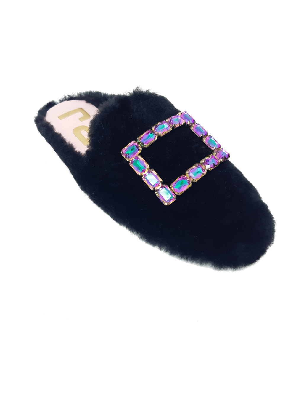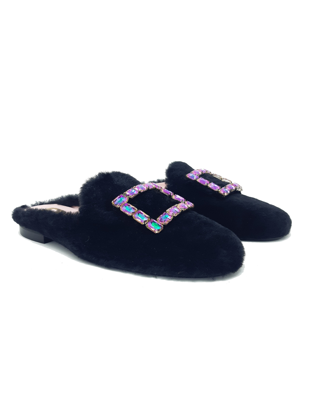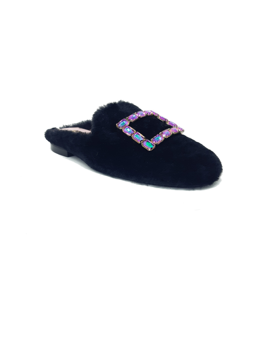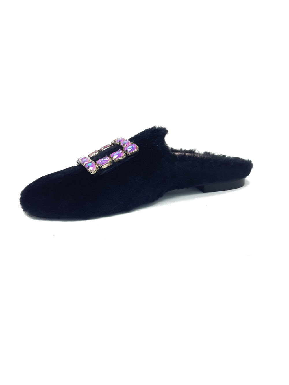 Slippers in Ecofur con applicazione gioiello